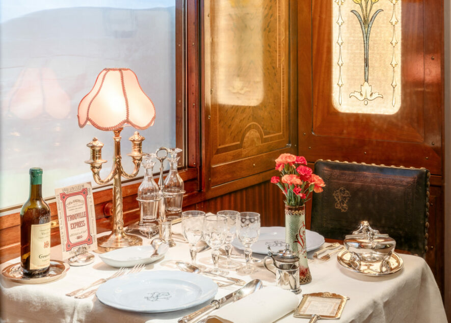 -Reconstitution d’un wagon-restaurant de l’Orient-Express à la Villa du Temps retrouvé – Cabourg, Collection Michel Cozic ©Antoine Mercusot